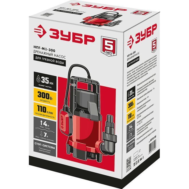 - Насос дренажный погружной ЗУБР НПГ-М1-300, предназначен для автоматического перекачивания загрязнённой воды из емкостей и водоемов, организации забора воды с колодцев, скважин и подачи на высоту. Компактный высокопроизводительный насос.