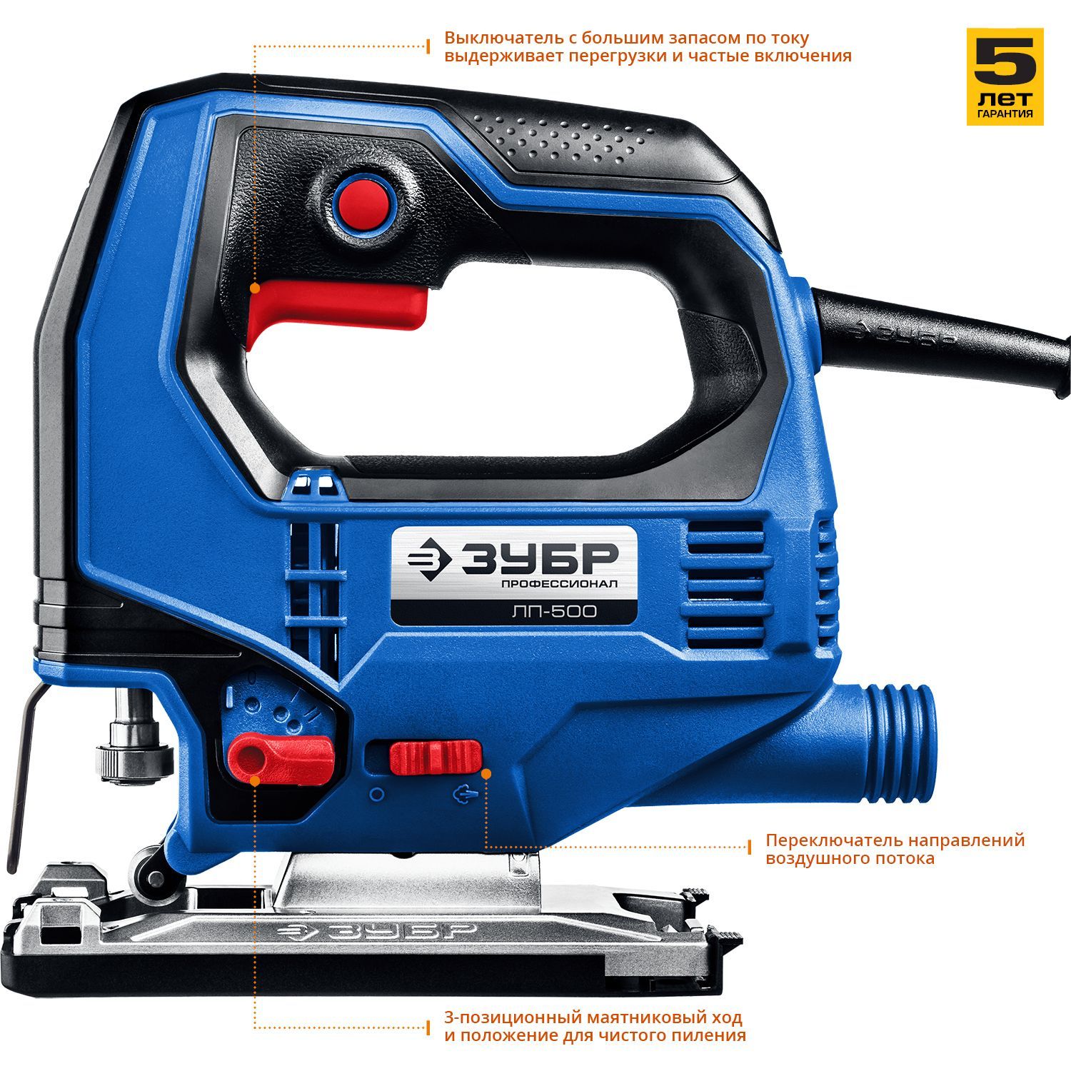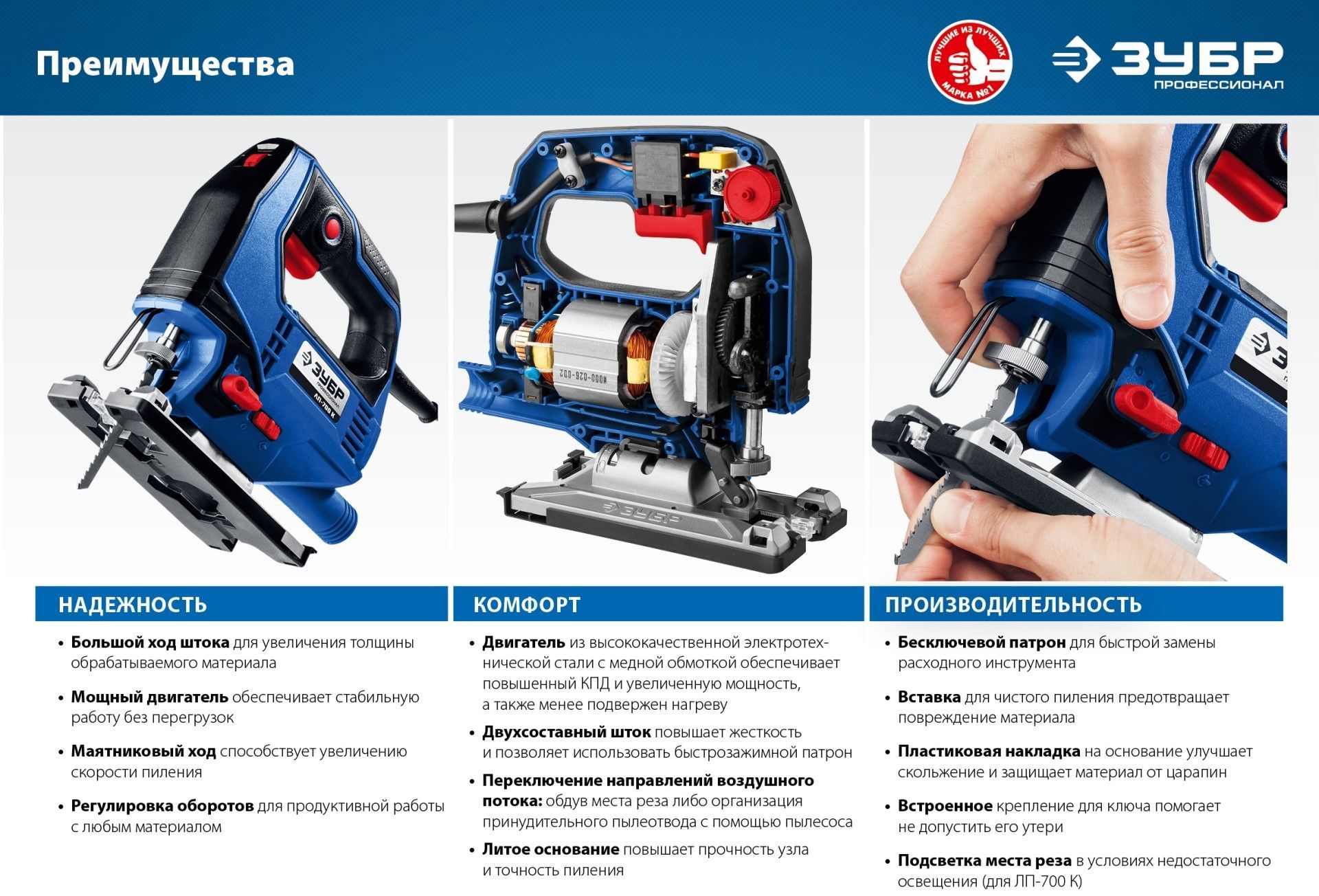 - 3-позиционный маятниковый ход для обеспечения как быстрого, так и чистого пиления