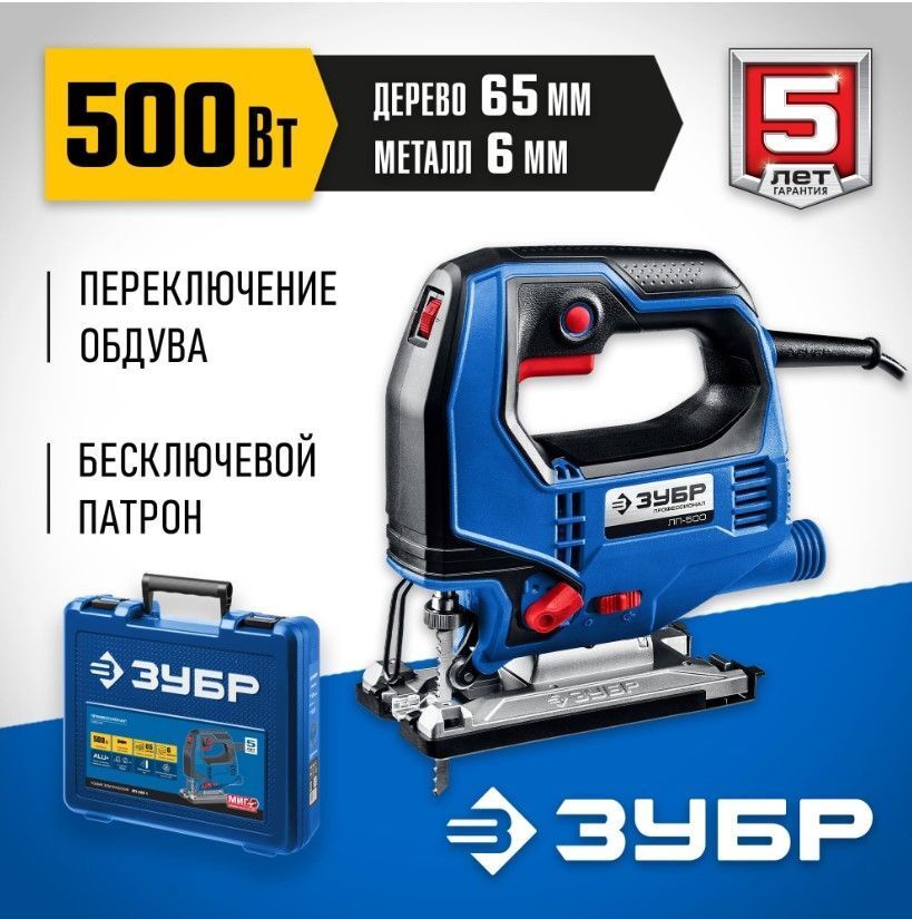 Лобзик электрический, ЗУБР Профессионал (ЛП-500 К) 500 Вт, 65 мм, кейс