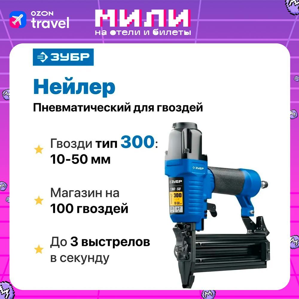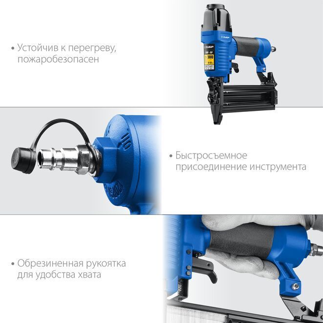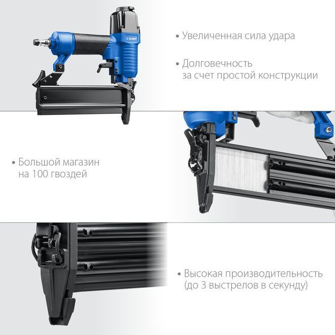 Профессиональный пневматический нейлер для гвоздей. Пневматический инструмент Зубр произведен из высококачественных материалов, позволяет быстро и эффективно выполнить свою работу.