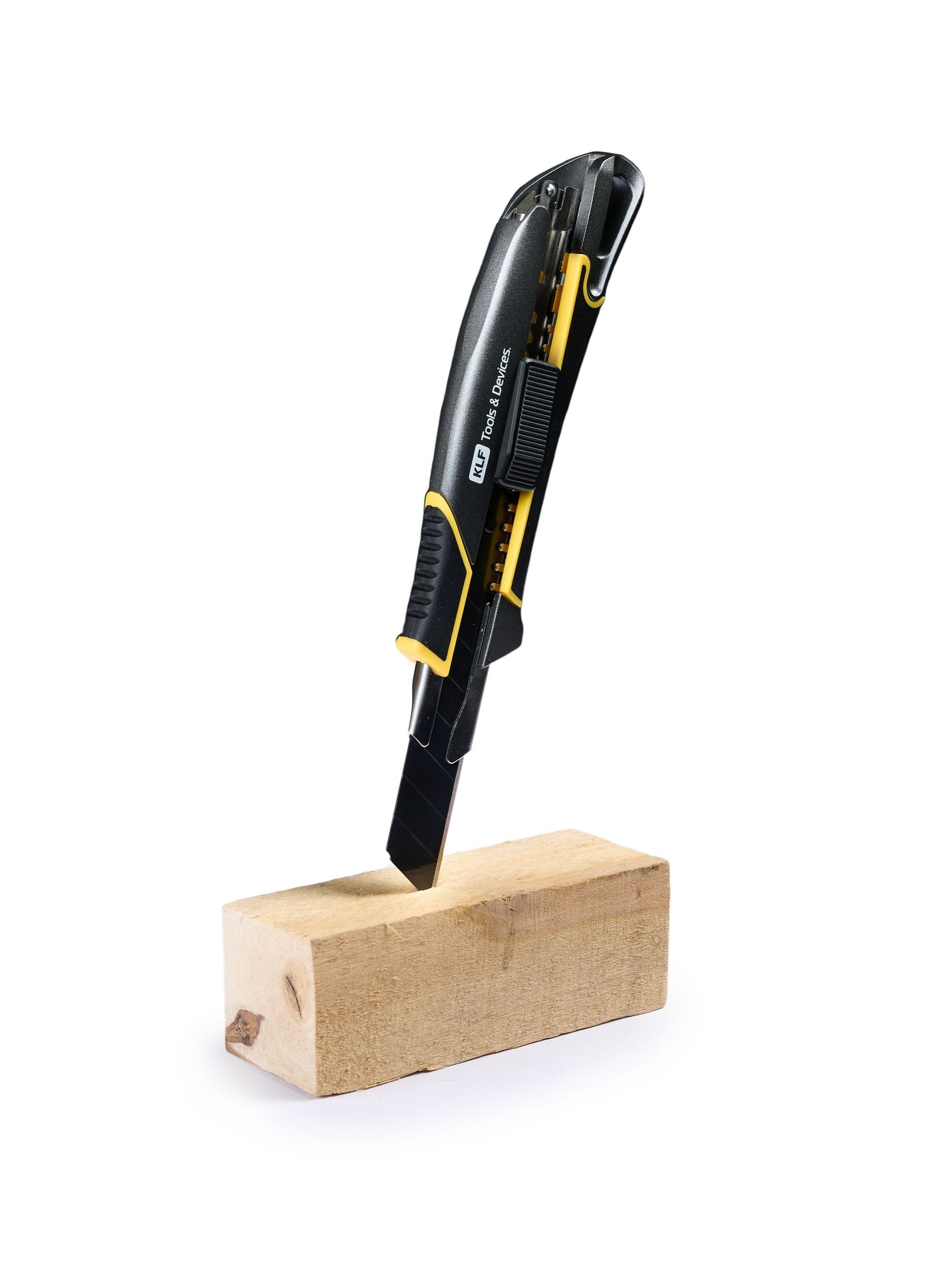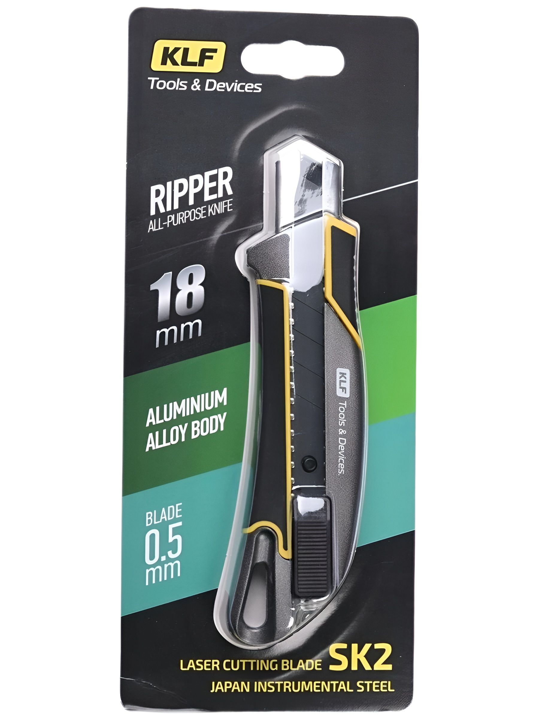 Строительный и канцелярский нож KLF 18 мм с системой АВТОСТОП — максимальная безопасность при резке любых материалов!