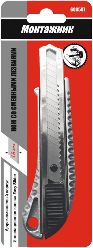 Нож со сменным лезвием 18 мм алюминиевый корпус, кнопка EASY SLIDER. "Монтажник" – купить за 129 ₽ | Техноклимат