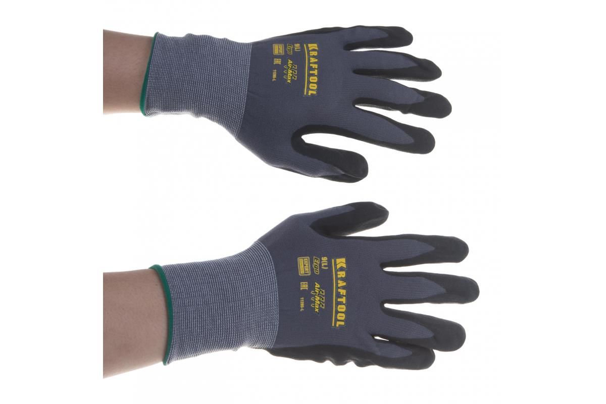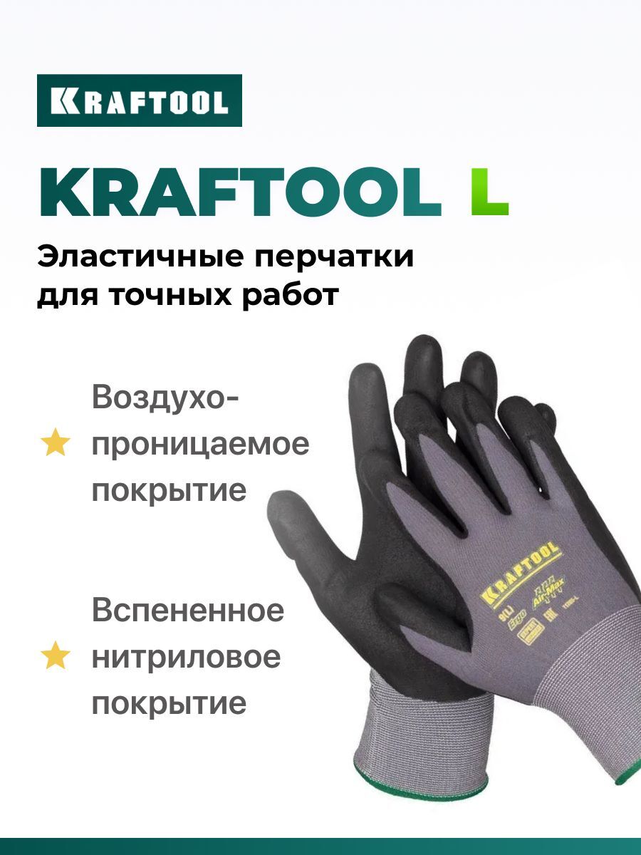 Перчатки защитные KRAFTOOL предназначены для выполнения точных работ в сухой среде, идеально подходят для операций с мелкими деталями.
