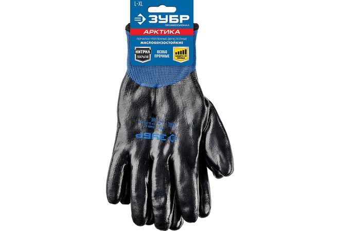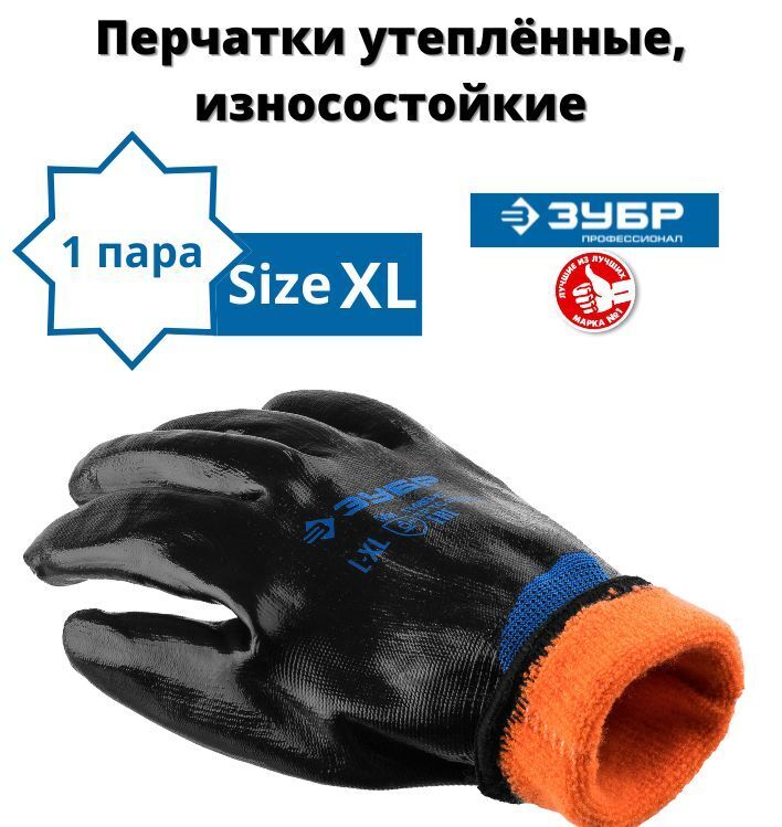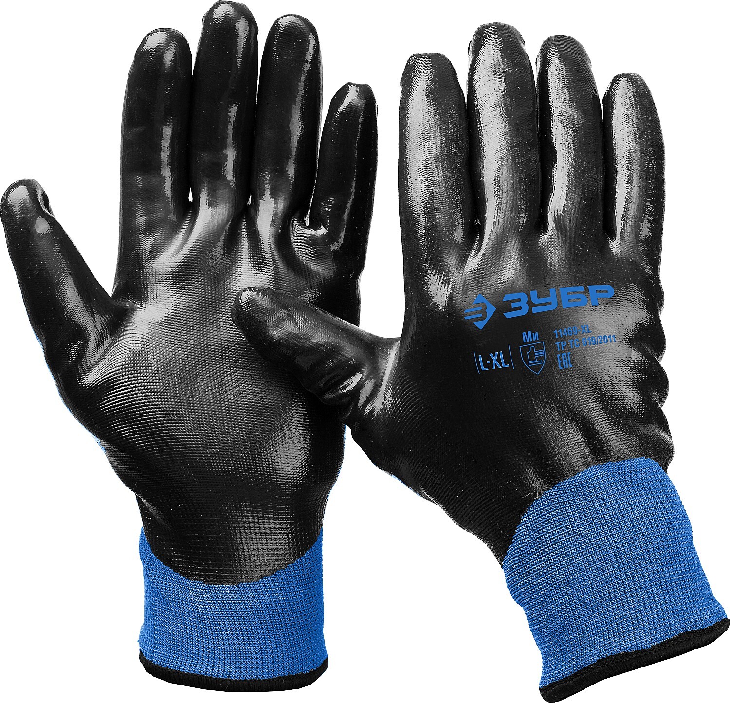 Перчатки рабочие зимние ЗУБР с нитриловым обливом 11469-XL, предназначены для защиты рук от общих производственных загрязнений, маслобензостойкие.