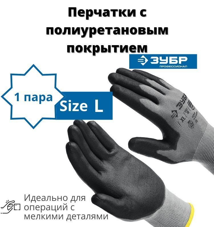 Перчатки строительные ЗУБР ТОЧНАЯ РАБОТА L, перчатки с полиуретановым покрытием, удобны для точных работ