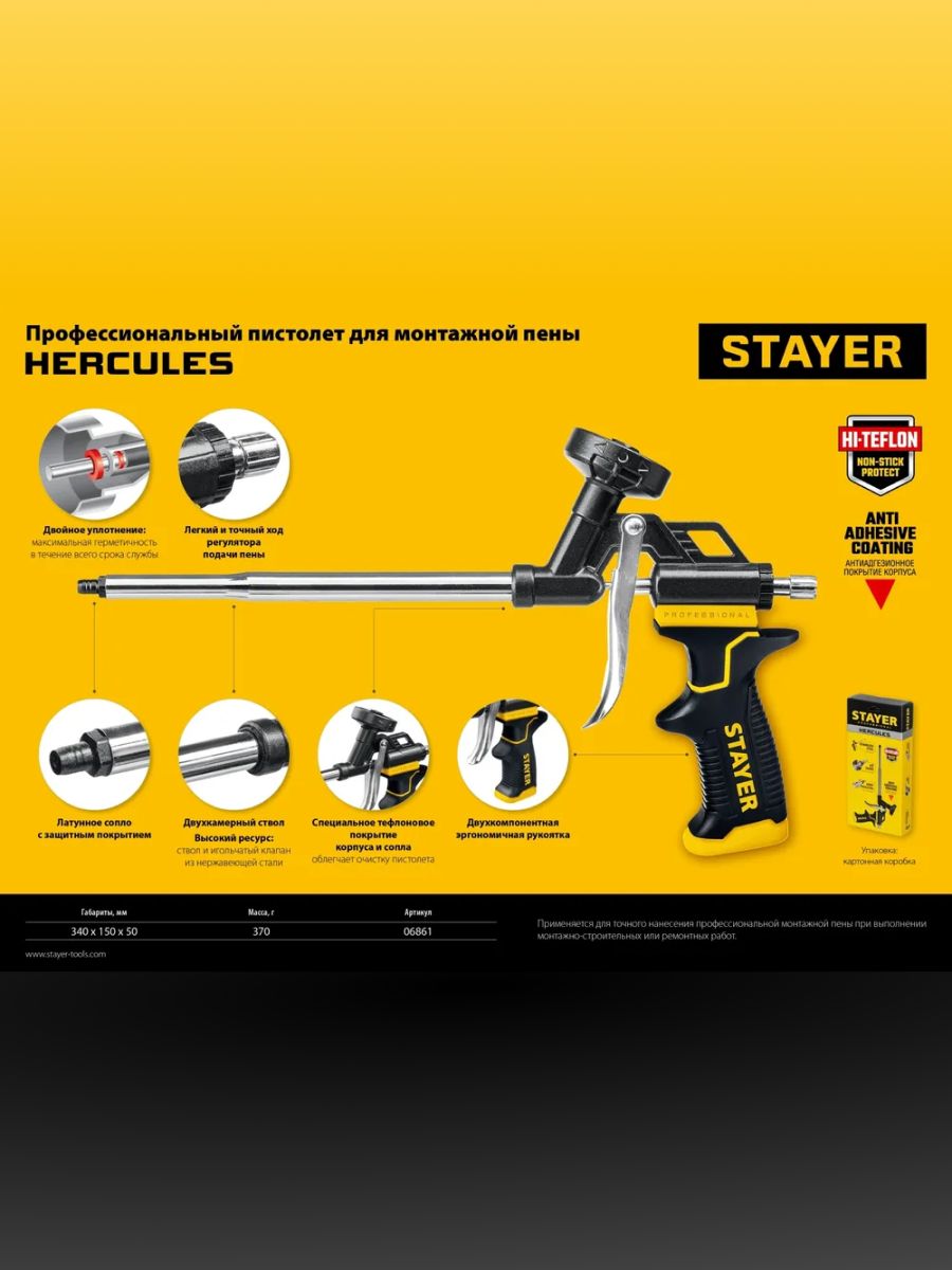 Преимущества пистолета для пены STAYER HERCULES: