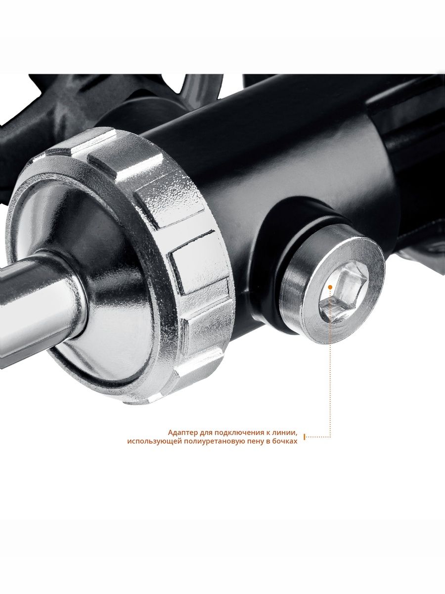 - Комплектуется адаптером для подключения к линии, использующей полиуретановую пену в бочках