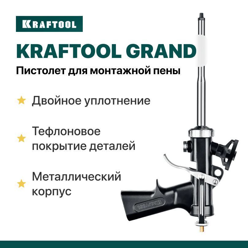 Пистолет для монтажной пены GRAND – инновационный профессиональный инструмент, предназначенный для индустриального применения, отличающийся непревзойдённой герметичностью, высокой надёжностью и удобством в работе. Инструмент оснащён надёжным цельнометаллическим корпусом и имеет покрытый тефлоном игольчатый клапан, это обеспечивает быструю и простую очистку, что высоко ценится профессионалами. При использовании с профессиональными баллонами обеспечивает многократно увеличенный выход пены по сравнению со стандартной упаковкой. При этом отсутствует эффект вторичного расширения.