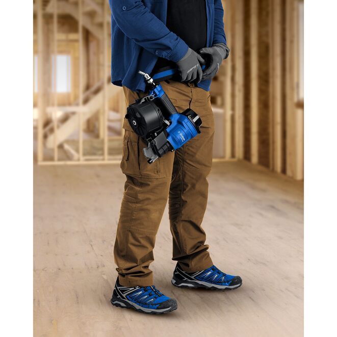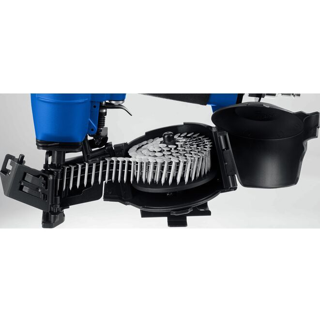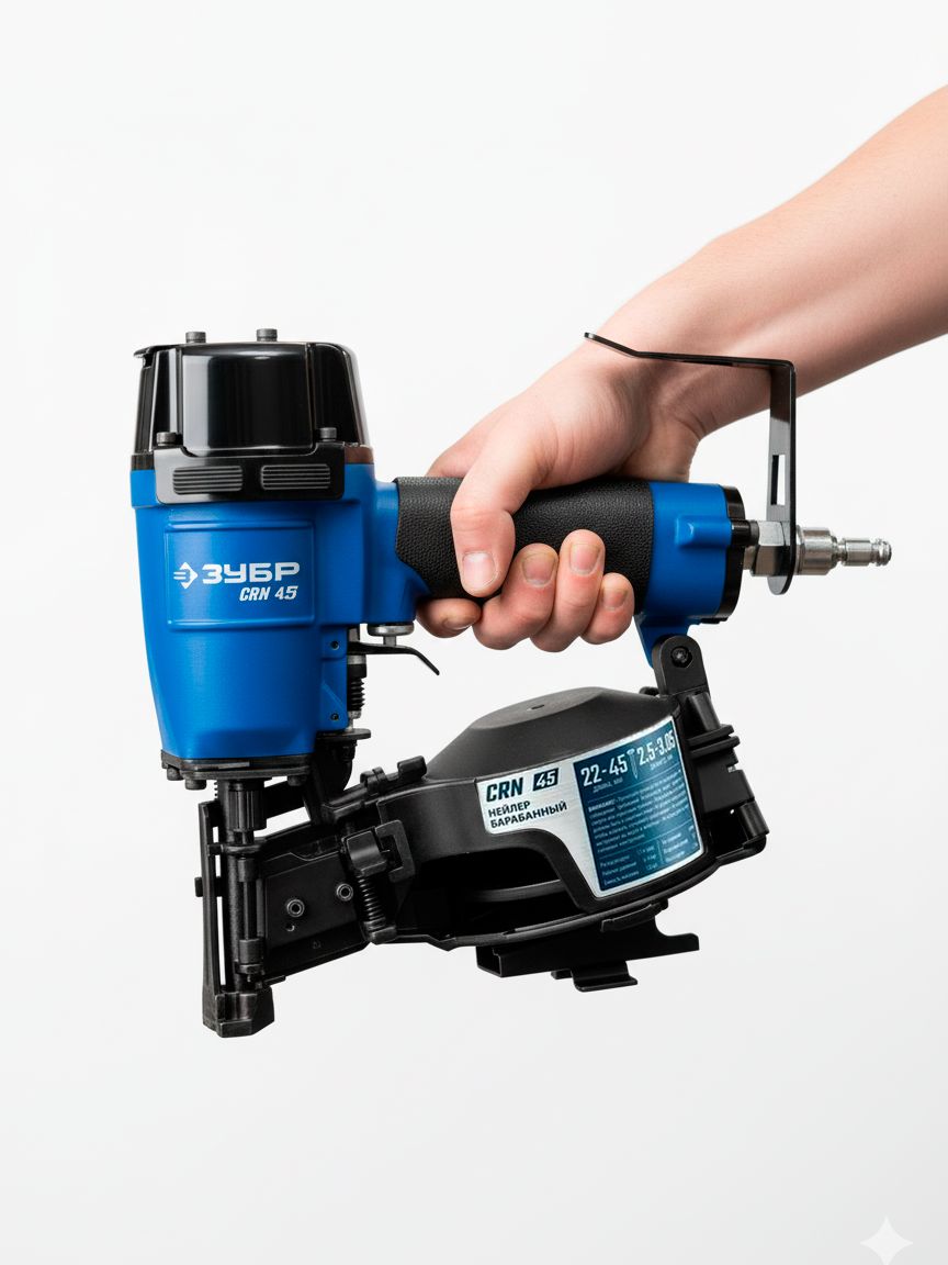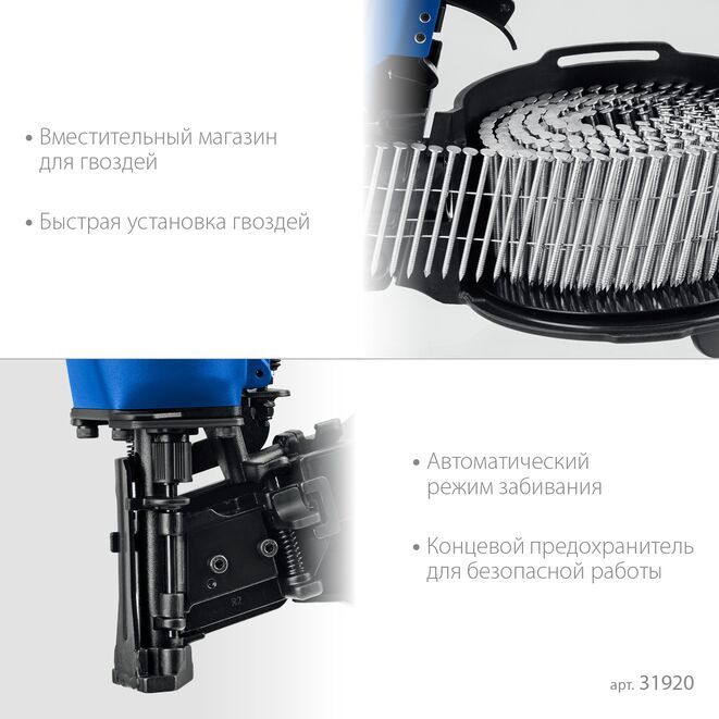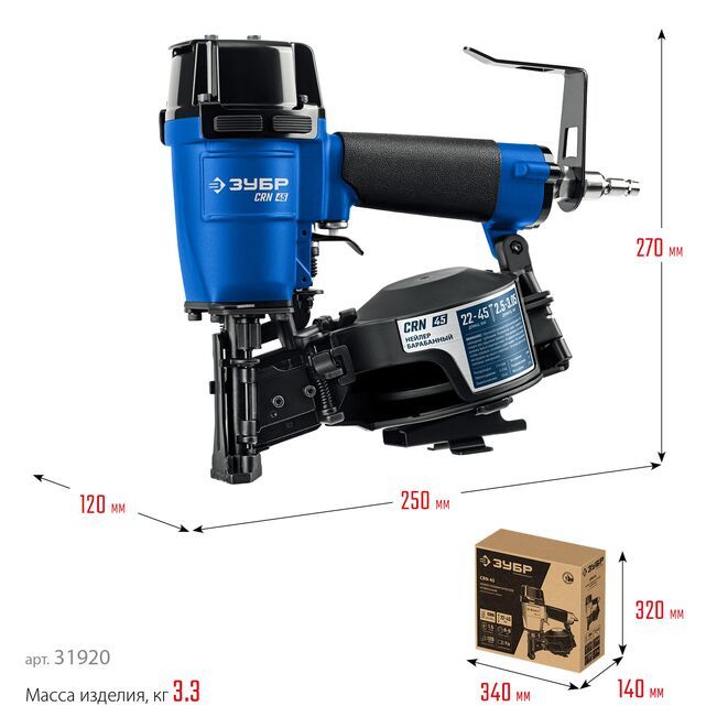Нейлер пневматический кровельный предназначен для кровельных работ с гвоздями барабанного типа длинной 22-45 мм, в частности монтажа гибкой черепицы. Справится с ремонтом, соединением других деревянных деталей.