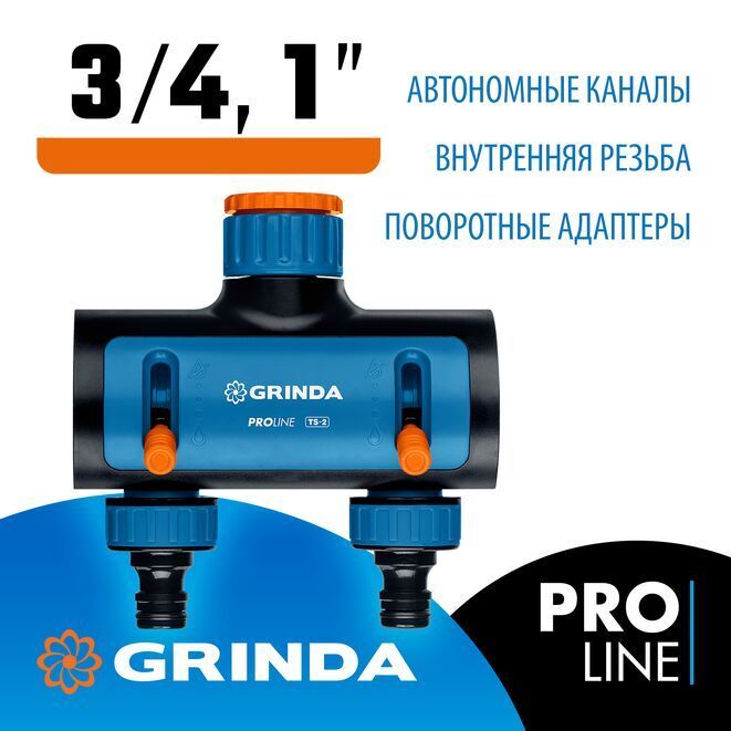 Поливочный распределитель GRINDA PROLine TS-2 двухканальный, с внутренней резьбой 3/4"-1"
