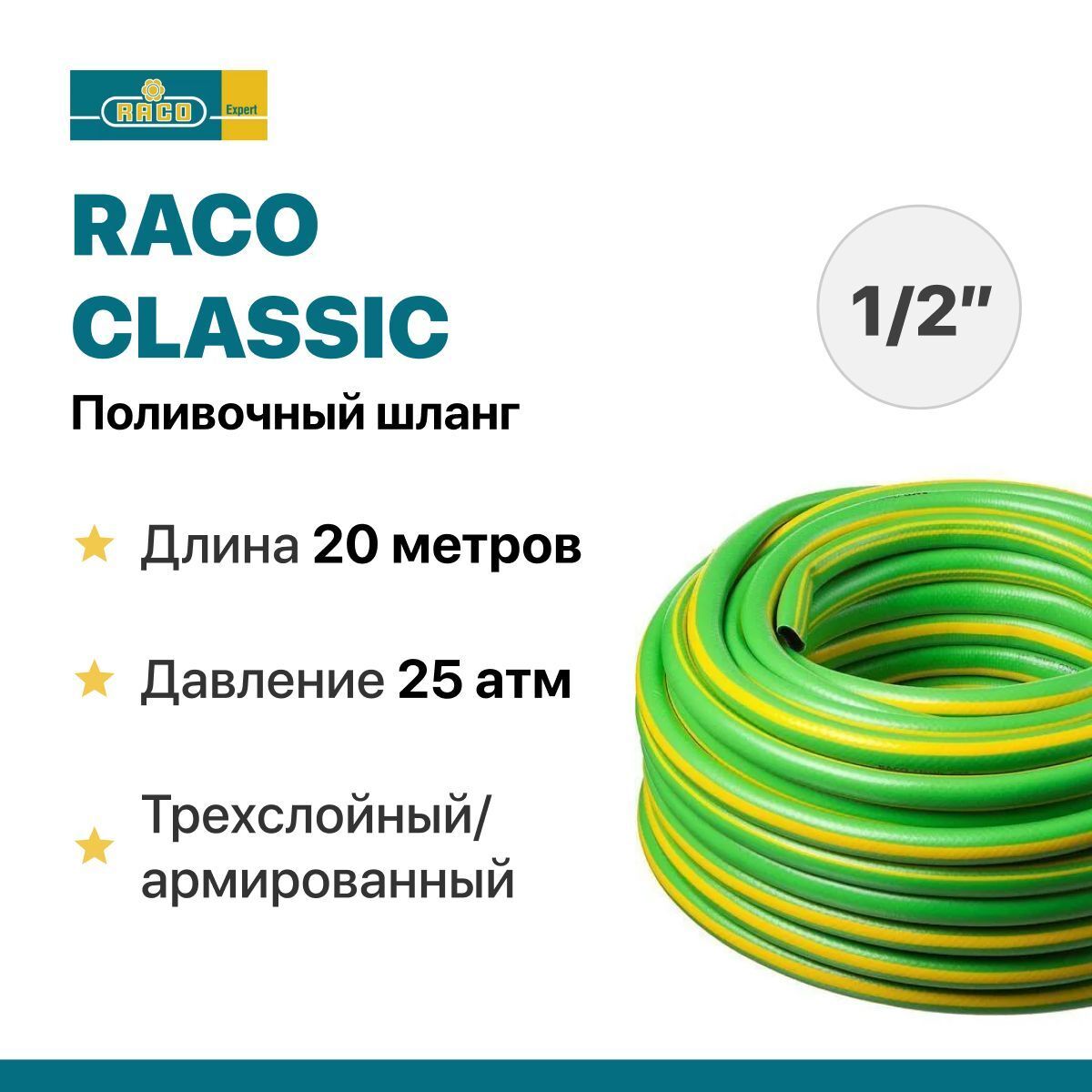 Поливочный шланг Raco 1/2" x 20 м, 25 атм. трёхслойный армированный