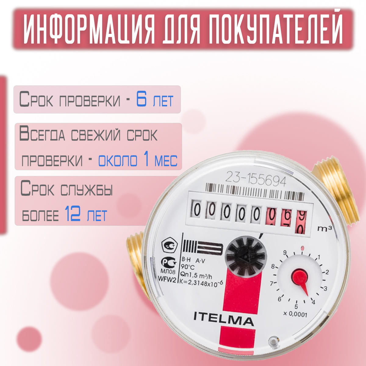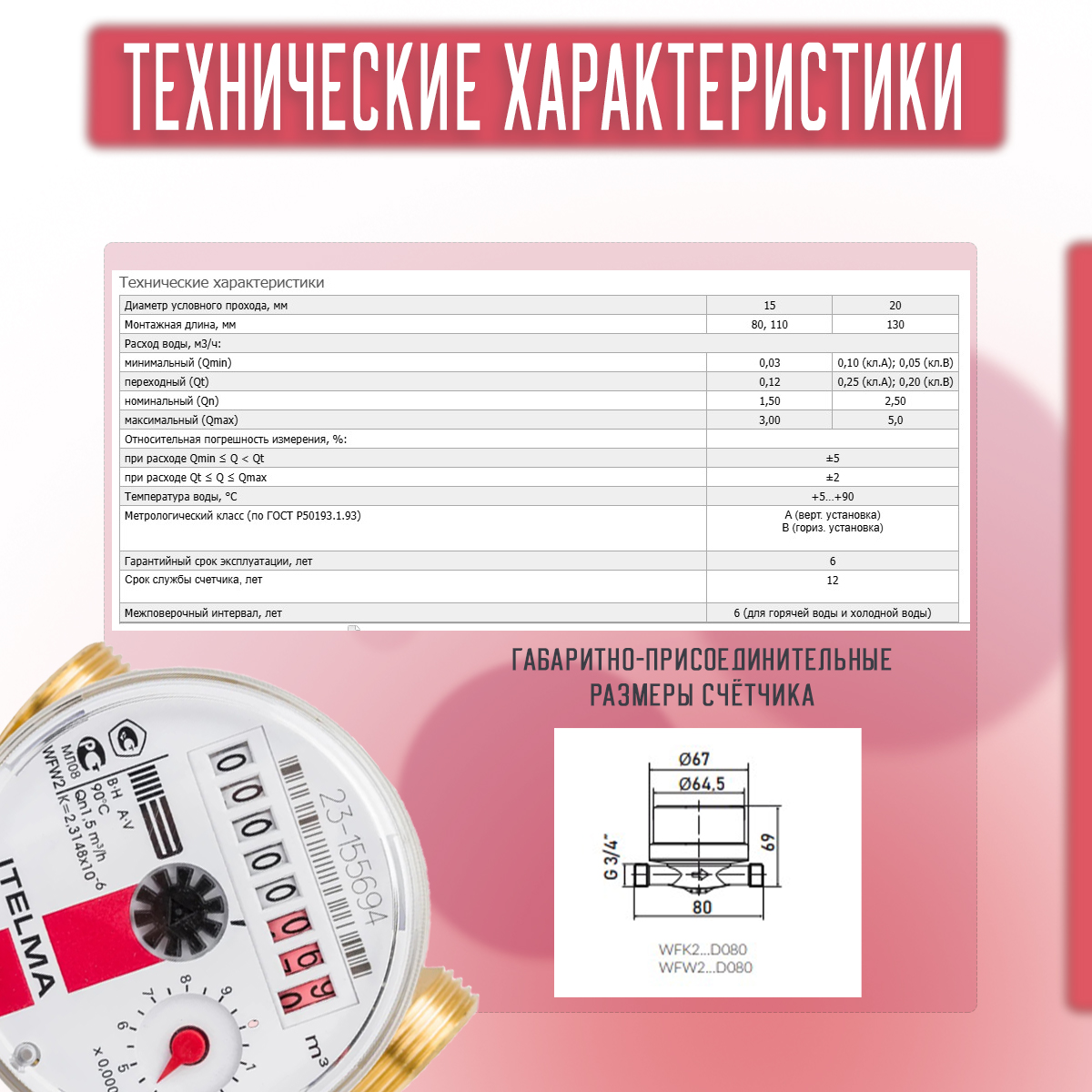 -Счётчик горячей воды ITELMA WFW20.D080, L80, Ду15. производятся по немецкой лицензии из западно-европейских комплектующих
