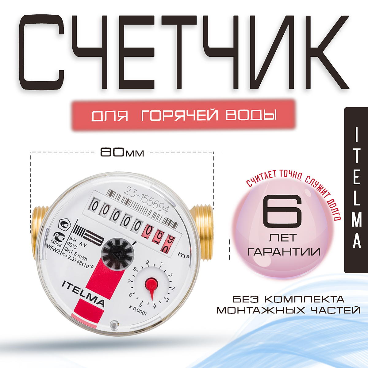 Счетчик горячей воды ITELMA L-80 мм R-L-0-IP54 без комплекта монтажных частей. для квартиры одноструйный применяется для учета водопотребления в системах водоснабжения любого типа: в индивидуальных домах, квартирах, офисах, административных зданиях