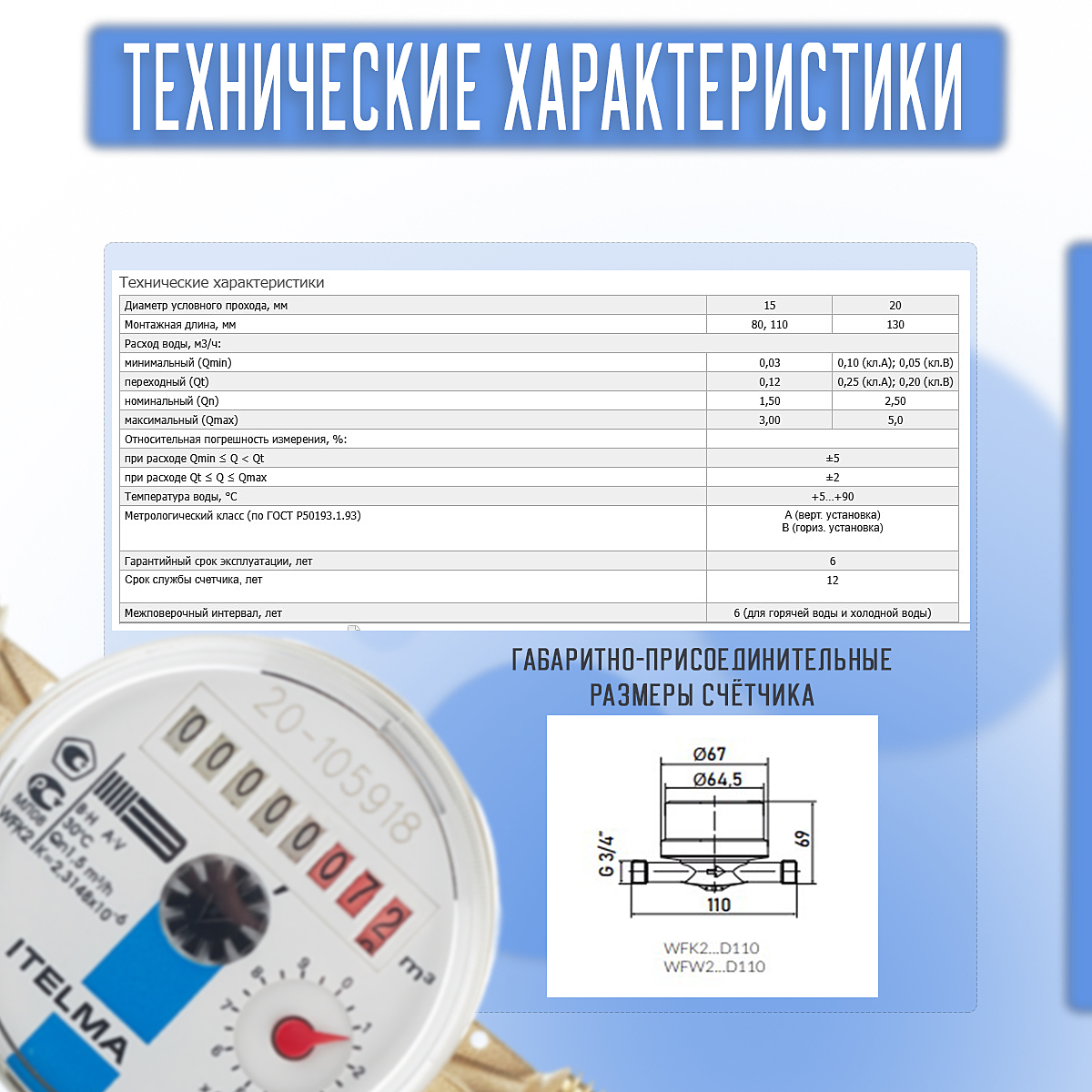 Устойчивость к повышенному давлению в системе водоснабжения (до 25 Атм)Устойчивость к повышенной температуре (до 110°С).Особенности Минимальная чувствительность (счетчик начинает фиксировать расход воды около 10 л/час);Лучшая антимагнитная защита (подтверждено испытаниями в независимой лаборатории ЕС/Рига, Латвия);Функциональный дизайн (удобная шкала считывания показаний и прекрасный внешний вид);Экологичность (при производстве корпусов не используется никелевое покрытие, которое запрещено Директивой Евросоюза с 2004 года);Не требуется соблюдения прямых участков до и после прибора;Допускается горизонтальная и вертикальная установка приборов.В зависимости от условий монтажа предлагаются различные решения (L=80, 110 или 130 мм). Данный счетчик имеет длину 110 мм.