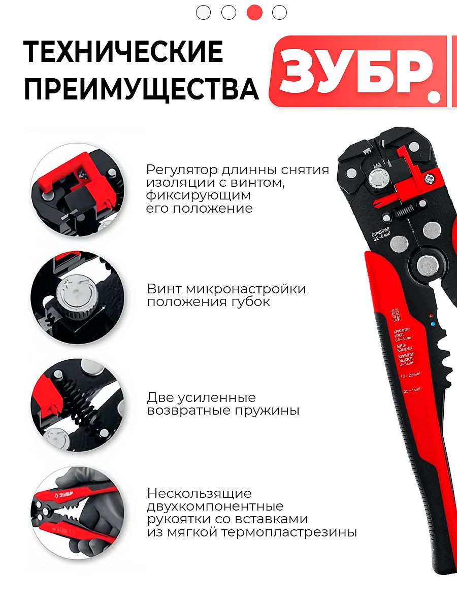 Инструменты для снятия изоляции ЗУБР, изготовлены из высококачественной стали с закалкой рабочих поверхностей, предназначены для профессионального применения. Обладают повышенным ресурсом, обеспечивают отличное качество электромонтажных работ.
