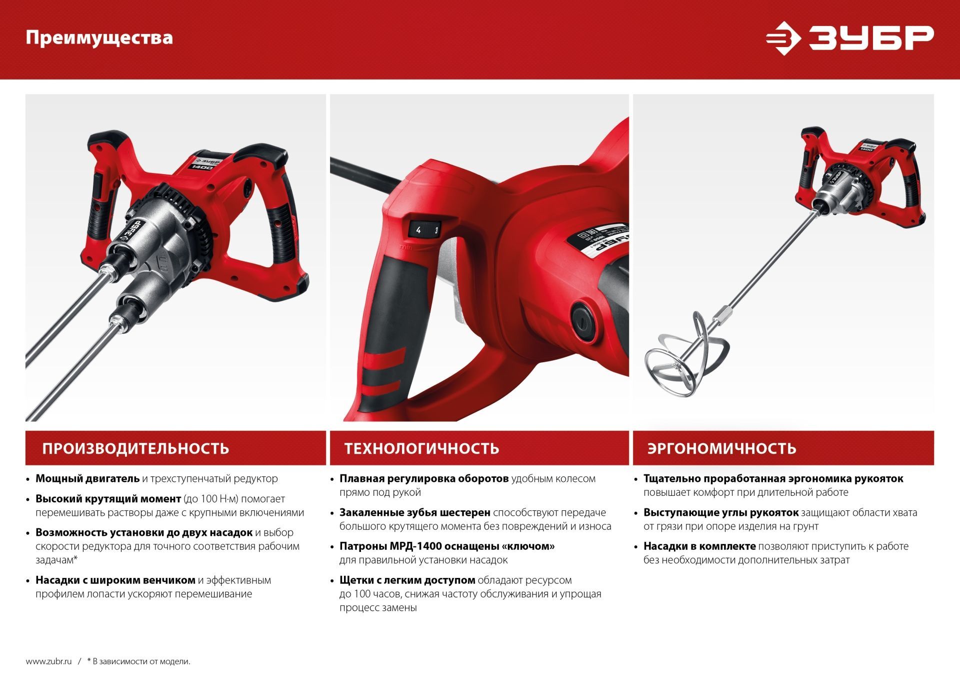 - Увеличенная мощность двигателя позволяет легко перемешивать любые растворы, вплоть до самых ″тяжелых″