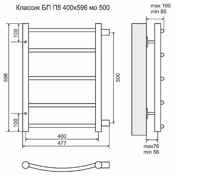 Водяной полотенцесушитель Terminus Классик П5 400x596 м/о 500 с боковым подключением. Для производства полотенцесушителя используется только высококачественная нержавеющая сталь марки AISI 304L с высоким содержанием легирующих элементов, Ni и Cr, это позволяет изделиям сохранять стойкость к агрессивным коррозийным средам, что существенно продлевает срок их эксплуатации. Толщина стенки используемой трубы не менее 2 мм, это обеспечивает 10-ти кратный запас прочности, труба устойчива к резким перепадам давления в системе водоснабжения. Используется аргонно-дуговая технология сварки. Поверхность изделия обработана методом плазменной полировки и не имеет царапин и микротрещин.