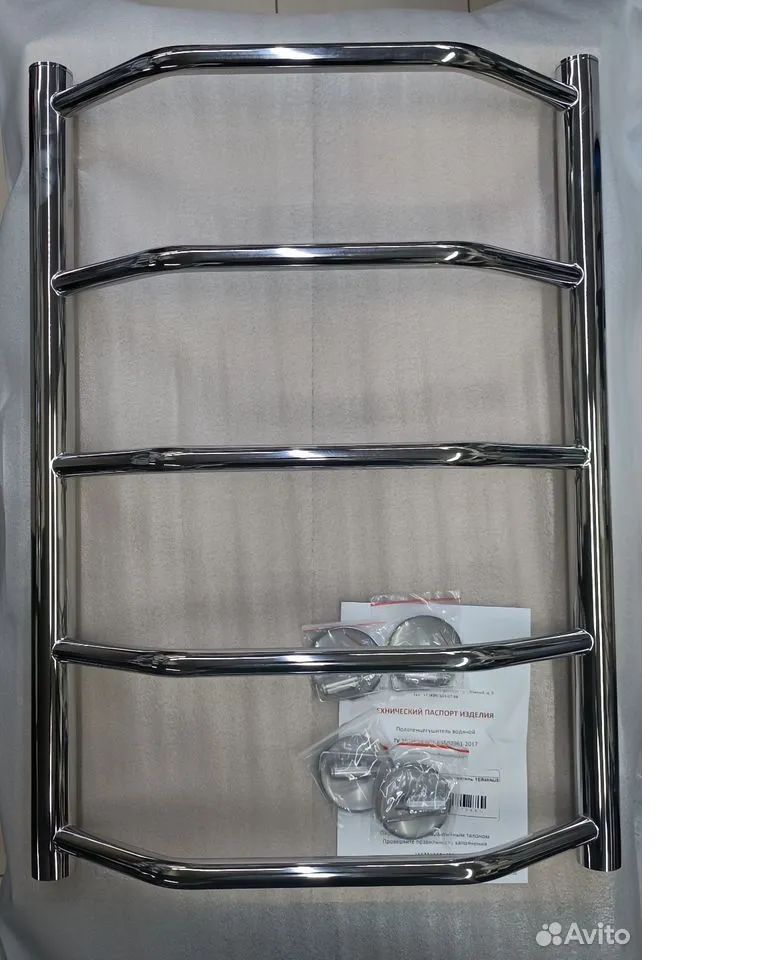 Полотенцесушитель 1 шт., кран маевского 1 шт., заглушка 1 шт., крепление телескопическое 4 шт., тех. паспорт товара.