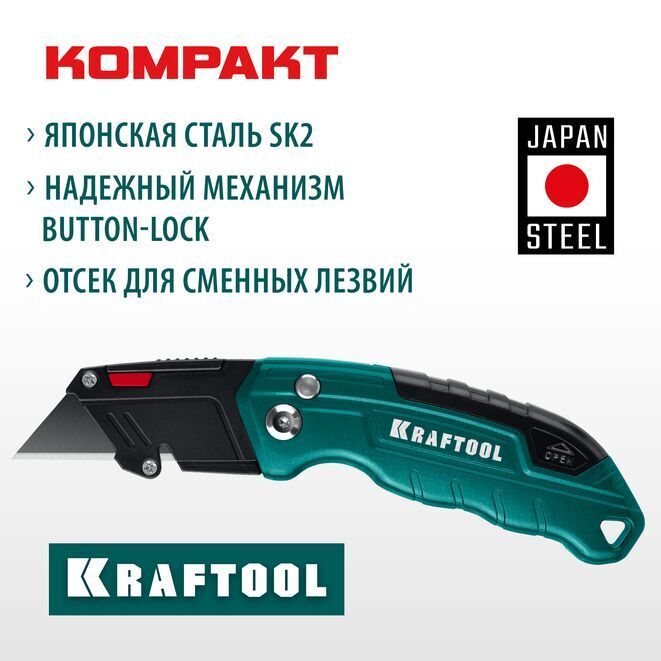- Надежный фиксатор лезвия Button-lock,