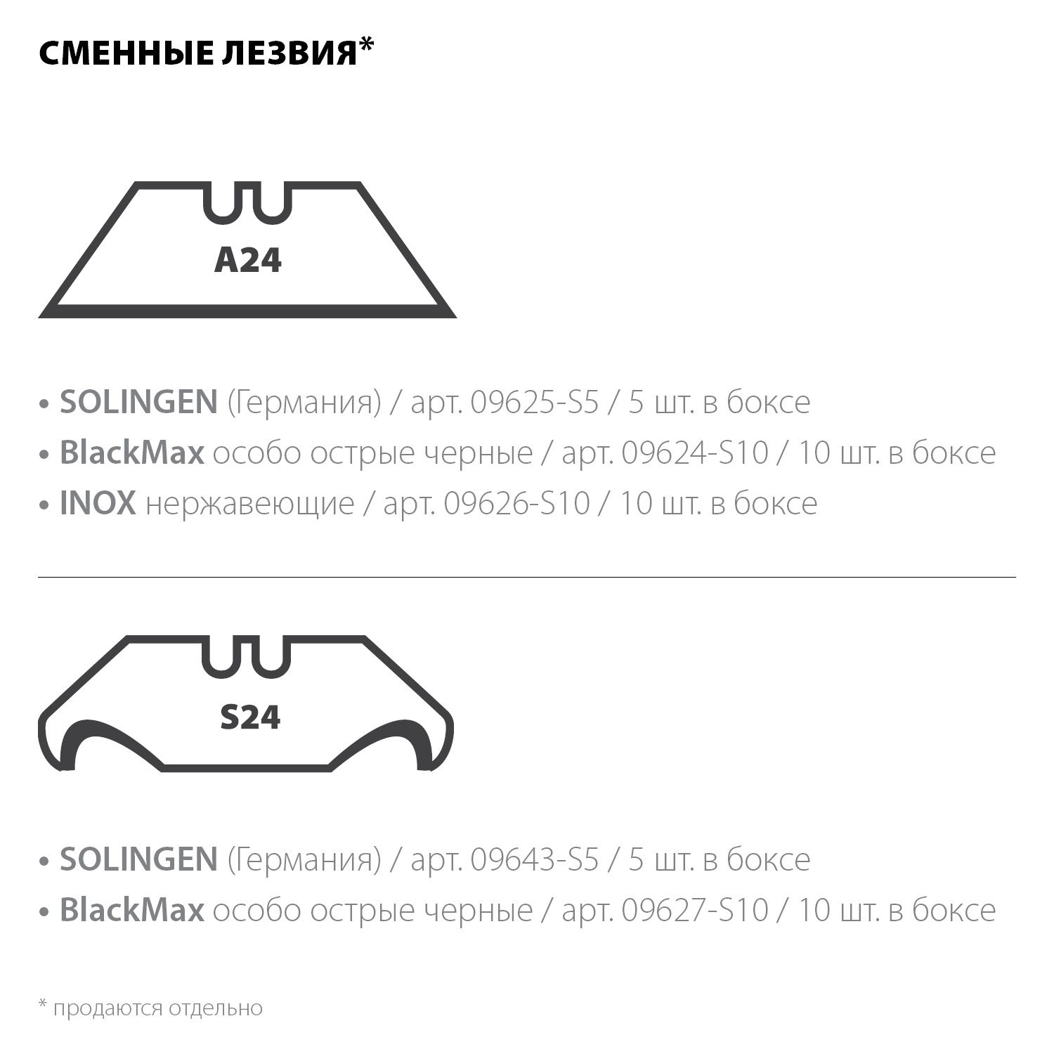 - Лезвия тип А24 из особоострой стали SK2