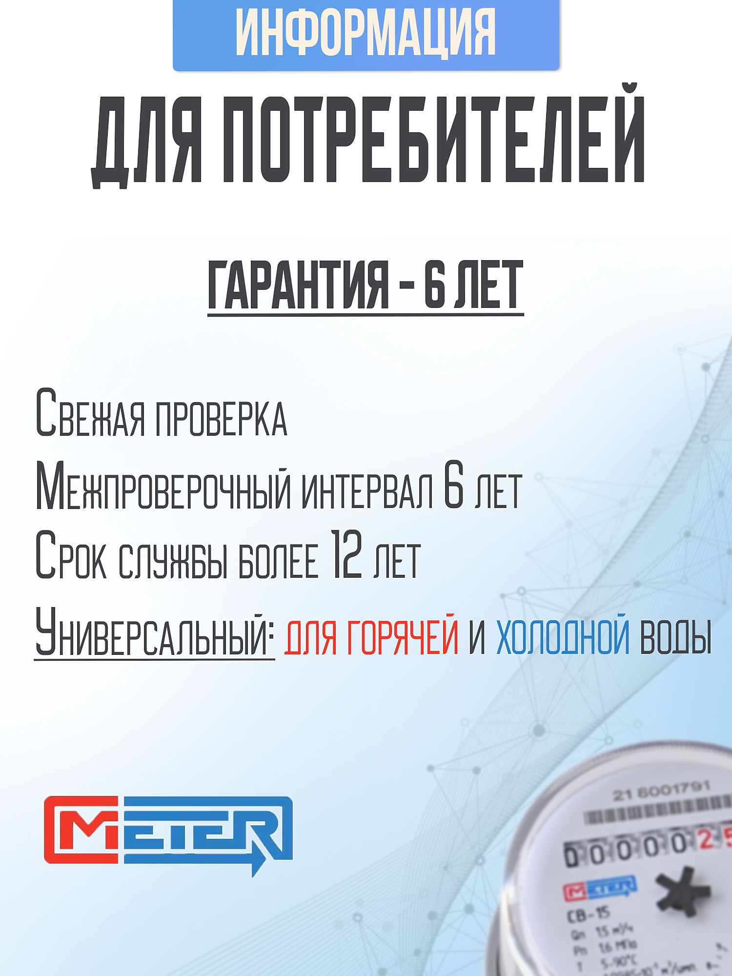 Ищете надежный и точный прибор для учета расхода воды в вашей квартире или доме? Тогда вам подойдет универсальный водяной счетчик МЕТЕР!