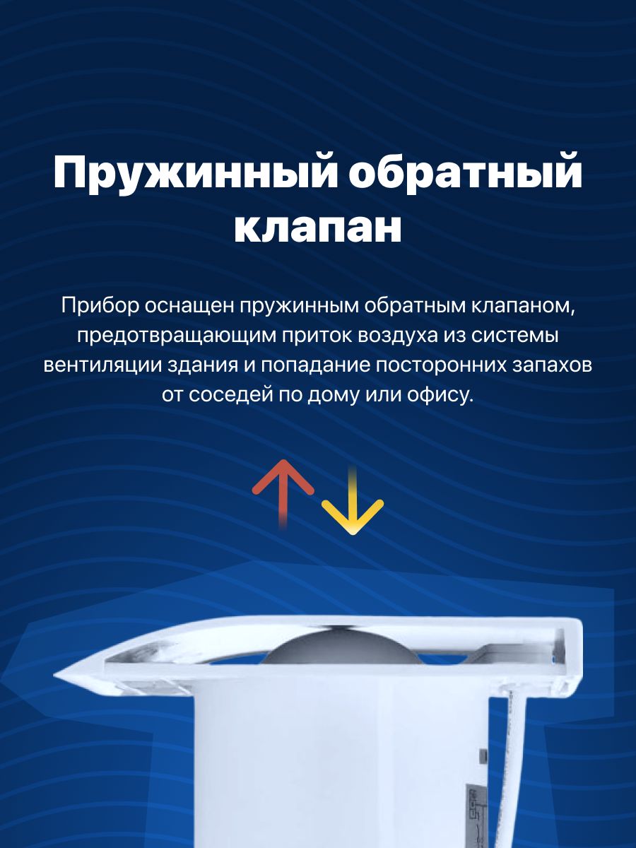 Вентилятор с обратным клапаном для настенной установки, что позволяет использовать его как вытяжка в туалет. Он идеально подходит для вентиляционного канала диаметром 100 мм и обеспечивает почти бесшумную работу. Это делает вытяжной вентилятор надежным выбором вентиляции для ванной.