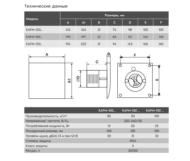 - Три исполнения: стандартное, с регулируемым таймером задержки отключения 1–25 мин, с датчиком влажности 40–100 % и регулируемым таймером 1– 25 мин.