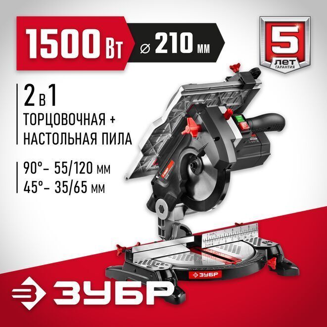 ЗУБР 1500 Вт, 210х30 мм, пила торцовочная комбинированная ЗПТК-210-1500 Мастер – купить за 12 408 ₽ | Техноклимат