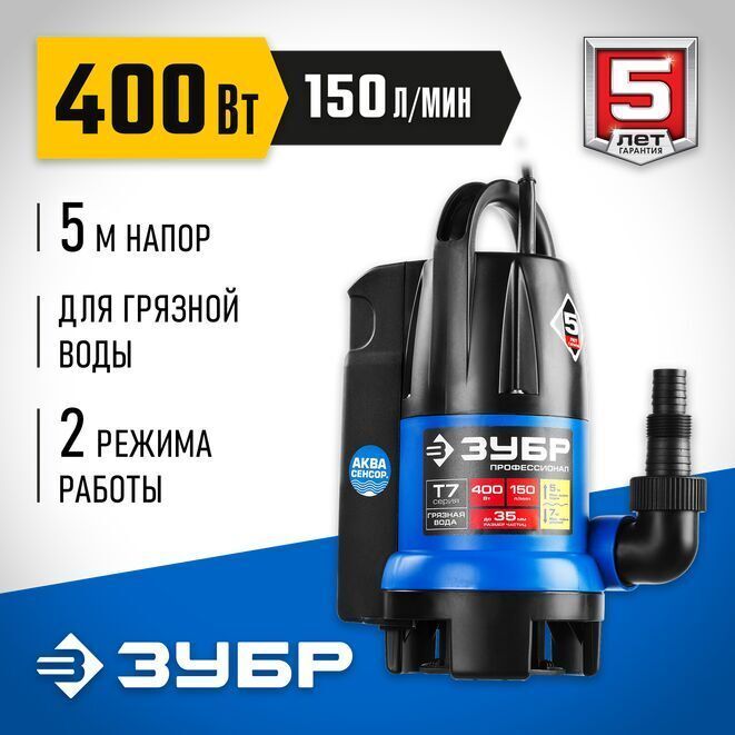ЗУБР 400 Вт, 150 л/мин, насос погружной дренажный для грязной воды НПГ-Т7-400 Профессионал